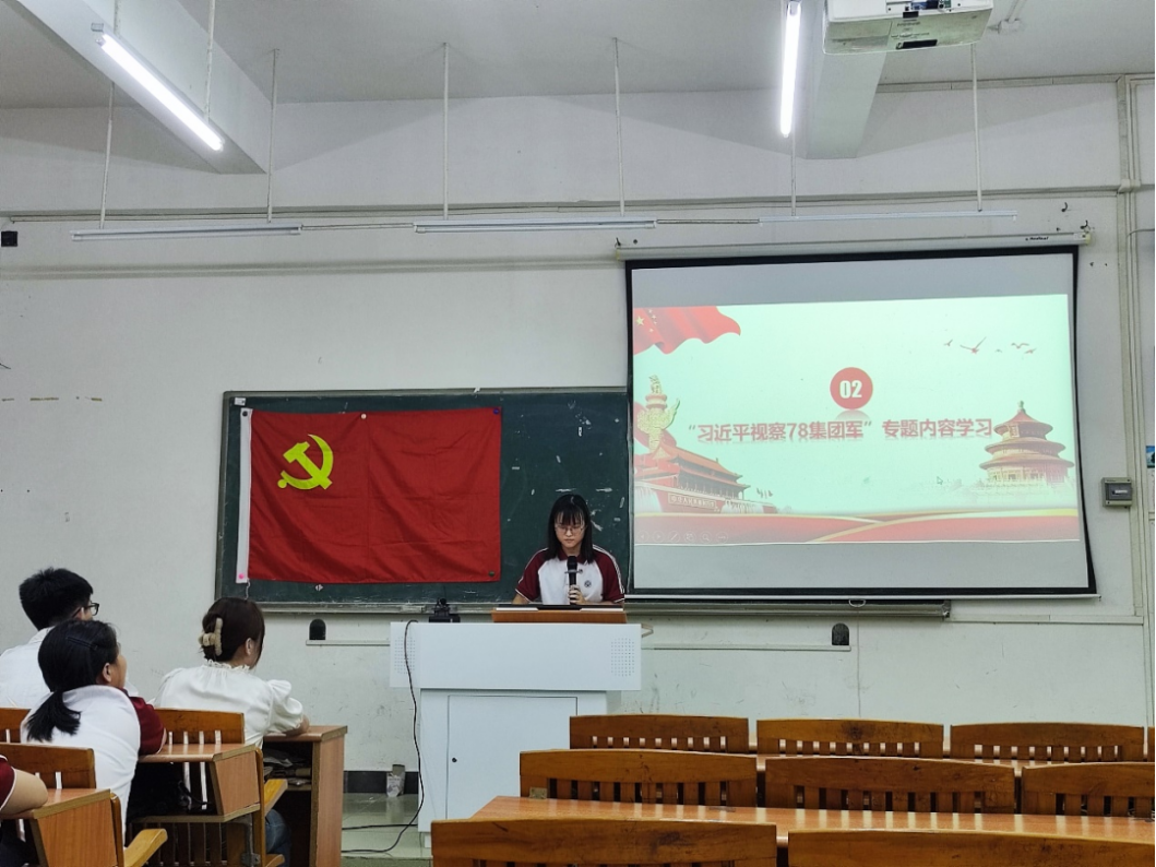为提高党支部的创造力、凝聚力和战斗力,学习部队教育管理,深入贯彻党的建设会议精神。数据科学公司员工第三党支部于2023年9月13日17:50在励志楼D103开展“习近平总书记视察78集团军”党日主题活动。出席本次会议的有数据科学公司员工第三党支部书记吴诗雨老师、支部全体党员,会议由黄秋格同志主持。
