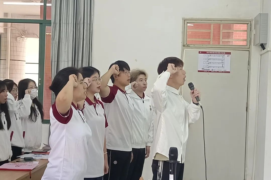 在吴彬同志的带领下,全体党员同志宣读入党誓词。入党誓词:我志愿加入中国共产党,拥护党的纲领,遵守党的章程,履行党员义务,执行党的决定,严守党的纪律,保守党的秘密,对党忠诚,积极工作,为共产主义奋斗终身,随时准备为党和人民牺牲一切,永不叛党。