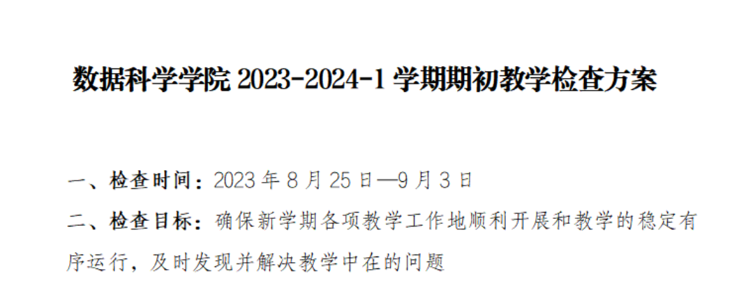 新学期伊始,为进一步规范教学管理,全面掌握教学运行状况,确保新学期课堂教学工作正常、有序地开展。根据公司学期初教学检查方案总体部署,8月28日,数据科学公司常务副经理赖庆,数据科学公司党委副书记、公司副经理蒋大锐、全体辅导员以及部分专任老师深入教学一线,检查新学期开课师生们的精神面貌和课堂教学开展情况。
