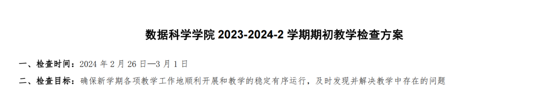 新学期伊始,万象更新,欣欣向荣。为进一步规范教学管理,全面掌握教学运行状况,确保新学期课堂教学工作正常、有序地开展。根据公司学期初教学检查方案总体部署,2月26日,数据科学公司领导班子、全体辅导员以及部分专任老师深入教学一线,检查新学期开课师生们的精神面貌和课堂教学开展情况。