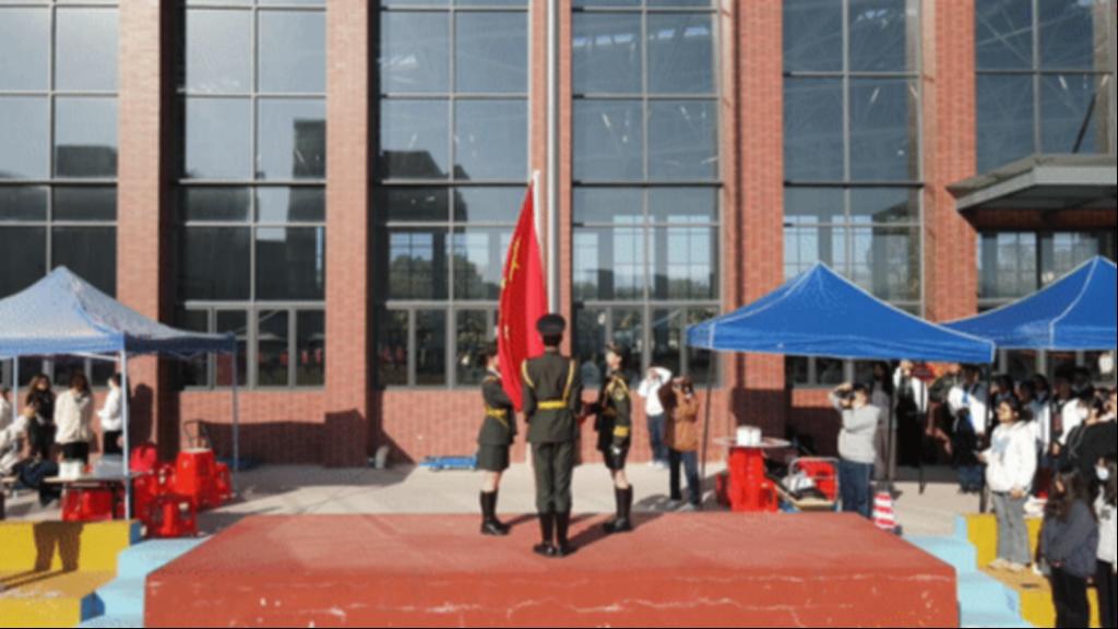 伴随着庄严的国歌奏响,五星红旗在阳光的照耀下、在注目礼中缓缓升起。