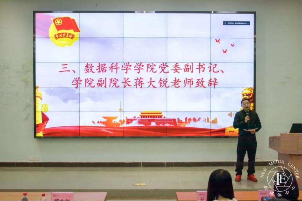 数据科学公司党委副书记、公司副经理蒋大锐副教授向本次大会致辞。他向第一届团委、第二届员工会所有工作人员致以了最诚挚的感谢,提到正是大家辛勤地工作、无私地奉献,才为我们公司取得巨大的成就提供了强大的动力。