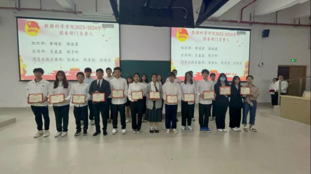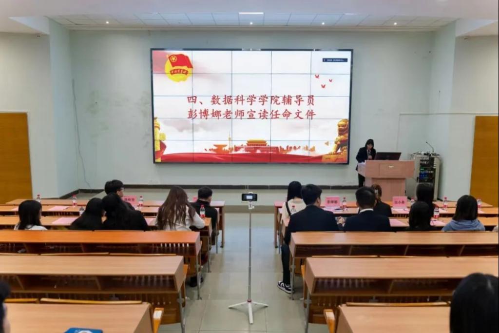 彭博娜老师上台宣读关于任命2023-2024学年共青团伟德国际victor1946数据科学公司委员会员工负责人的决定、伟德国际victor1946数据科学公司员工委员会员工负责人的决定、伟德国际victor1946数据科学公司新媒体中心员工负责人的决定。
