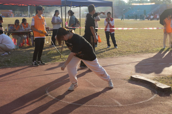 铅球在空中闪亮,