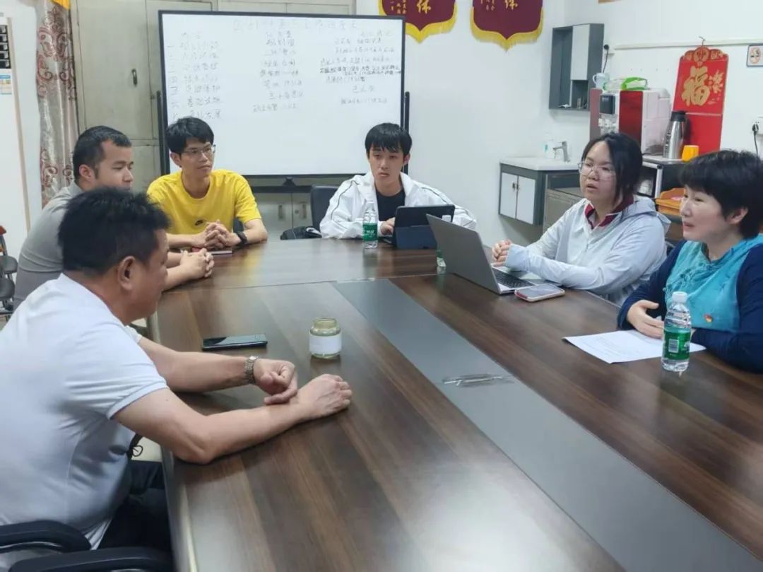 2025年4月29日上午,星火筑梦实践队与岳村村委在党群服务中心会议室召开工作对接座谈会。实践队指导老师彭博娜带领团队成员,与岳村村党群服务中心党总支部书记、村委会主任刘木晃,党总支部副书记、村委会委员刘宇华,村委委员钟文浩等干部进行了深入交流。