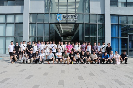公司代表潘登与几位工作人员热情接待了师生团队,在一楼门口合影后,研学活动正式开启。
