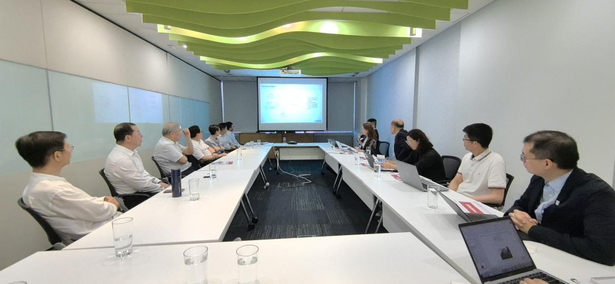 同日下午,代表团转赴香港应用科技研究院(光子学中心5楼)进行专题交流。香港应用科技研究院(ASTRI)的会议则由首席科技官黄莹博士主持,余涛博士(首席技术专家)、王雁晨女士(总监)、邓羽真博士(总监)、吴盛鹏先生(首席工程师)及客户拓展经理陈长亨(Ken)先生等核心成员共同参与。