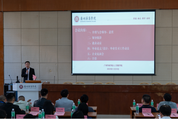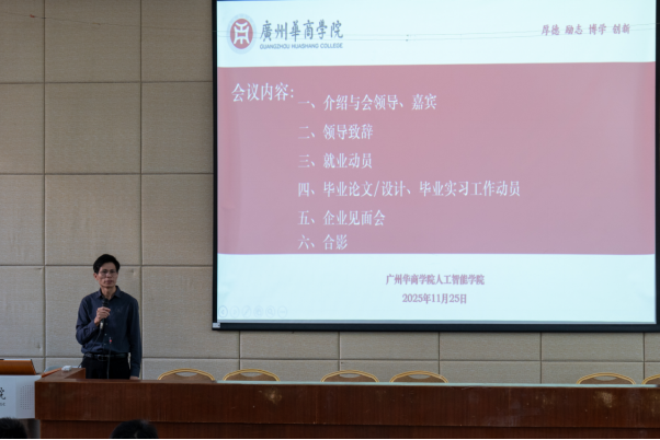 为精准对接AI行业人才需求,助力2026届毕业生打通“学业收尾”“实习实践”“就业落地” 全链条发展通道;同时搭建校企协同育人平台,推动企业需求与人才培养深度融合,2025年11月25日,伟德国际1946亚洲版于励志楼 C209 举办 2026 届毕业生就业动员暨校企见面会。本次会议由伟德国际1946亚洲版员工工作办公室副主任蓝光进主持。