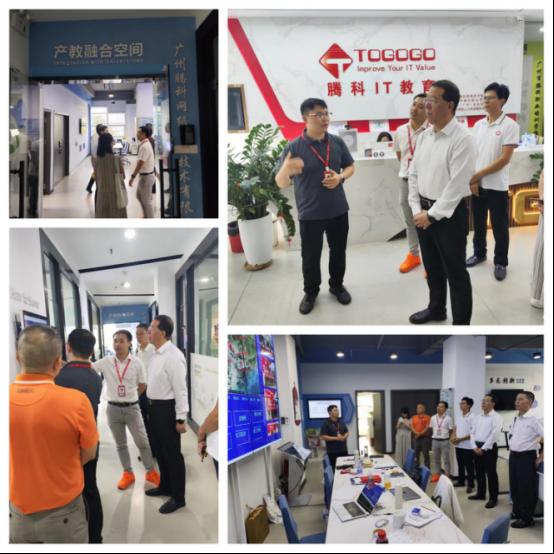 在陈经理和吴经理的带领下,公司代表团参观了腾科网络技术有限公司的企业展厅、客户业务查询终端和培训课室,了解了公司的业务发展和培训体系。唐总对代表团的到来表示热烈欢迎,并详细介绍了公司在产教融合方面的空间和潜力。