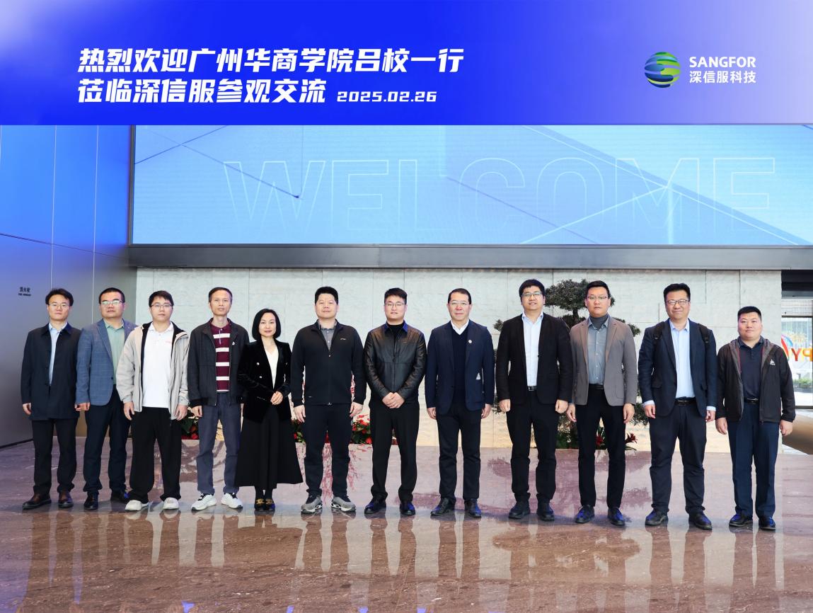 为深化产教融合,推动校企合作协同育人,进一步推进公司就业和实习工作,2025年2月26日,广州华商公司党委副书记、纪委书记、副董事长吕峻闽的带领伟德国际1946亚洲版副经理陈洋广、伟德国际1946亚洲版产教专员徐胜超、伟德国际victor1946实验教学与网络技术管理中心主任曾志区、副主任黎祥远、伟德国际victor1946后勤保卫处处长杨燕平、华商教育集团信息技术中心工程师唐湛一行,前往深信服科技股份有限公司(以下简称“深信服”)进行新春访企拓岗活动。深信服副总裁兼教育事业部总经理赵剑初、教育事业部产教融合部总经理彭杰、信锐公司广州分公司总经理高震、王伟以及广东分公司教育科研经理袁小辉等企业领导热情接待了伟德国际victor1946代表团。