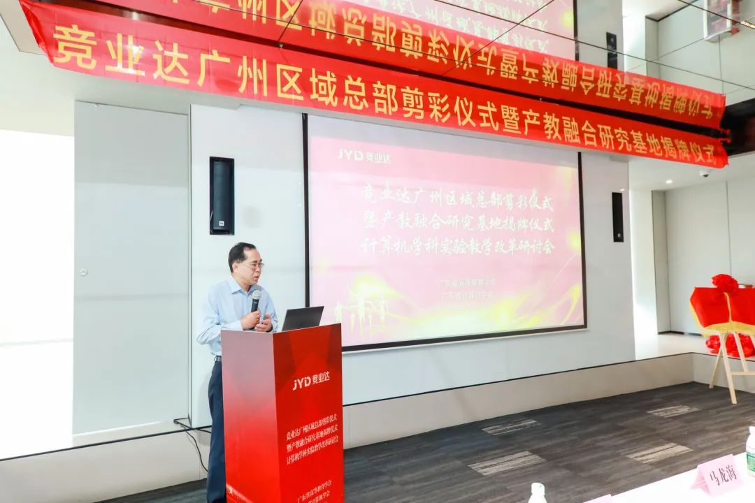 会议的第二阶段是嘉宾致辞,广东金融公司原党委副书记、广州新华公司副董事长马龙海、广东省高等教学学会常务副会长、研究员汤贞敏、北京竞亚达数码科技股份有限公司副总裁李文波等分别致辞。祝贺广东省计算机学科实验教学改革研讨会的顺利召开,祝贺北京竞亚达数码科技股份有限公司产教融合研究基地顺利揭牌,充分表达了此次研讨会的重要意义。