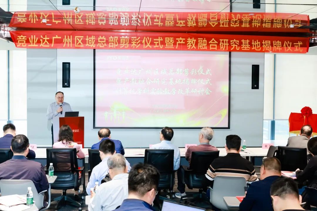 广东省计算机学会领导、广东省高等教学学会领导、广东省各高校计算机相关专业公司的领导与教师代表、职校计算机相关专业公司的领导与教师代表、计算机相关专业合作企业代表出席盛会,此次会议还有另外一个主题是北京竞亚达数码科技股份有限公司产教融合研究基地揭牌仪式与北京竞亚达数码科技股份有限公司广州区域总部乔迁仪式。此次会议由北京竞亚达数码科技股份有限公司实验教学与产教融合BU副总裁李朝辉、北京竞亚达数码科技股份有限公司副总裁李文波主持。