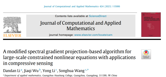 近日,公司教师李丹丹的论文“A modified spectral gradient projection-based algorithm for large-scale constrained nonlinear equations with applications in compressive sensing”在中科院二区TOP期刊(JCR一区)《Journal of Computational and Applied Mathematics》上发表。该期刊被公司认定为A2类。