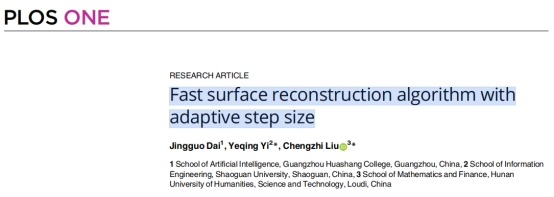 2025年1月,人工智能公司戴经国教授以第一作者身份在《PLOS ONE》期刊发表了题为“Fast surface reconstruction algorithm with adaptive step size”的论文。该期刊是SCI收录期刊,是JCR Q1分区,中科院三区。PLOS ONE是由Public Library of Science(PLOS)创办的一本综合性期刊,创刊于2006年,该期刊致力于推动科学研究的开放与共享,为全球学术界提供一个无国界、无障碍的科学交流平台。