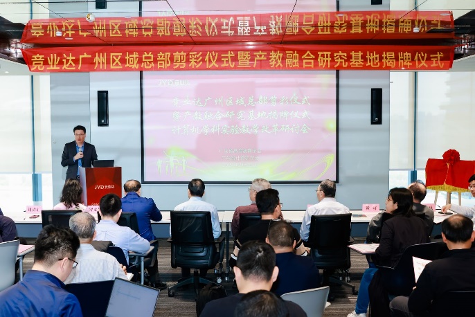 广东省计算机学会、广东省高等教学学会、广东省各高校计算机相关专业公司、职校计算机相关专业公司、计算机相关专业合作企业代表出席盛会,此次会议还有另外一个主题是北京竞亚达数码科技股份有限公司产教融合研究基地揭牌仪式。此次会议由北京竞亚达数码科技股份有限公司实验教学与产教融合BU副总裁李朝辉、北京竞亚达数码科技股份有限公司副总裁李文波主持。