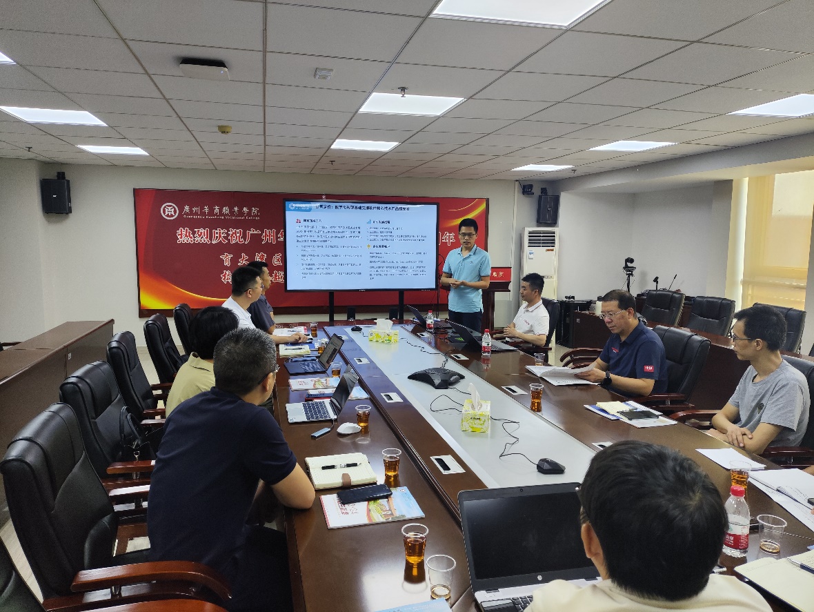 随后,北京联合伟世股份有限公司的售前经理曾德清从企业简介、企业主要业务、生成式人工智能AIGC内容、校企合作案例分享等方面介绍了人工智能方向的校企合作计划,通过分析与讨论,在AIGC通识课校企合作课程共建、人工智能行业老员工竞赛获奖等方面初步达成合作意向。