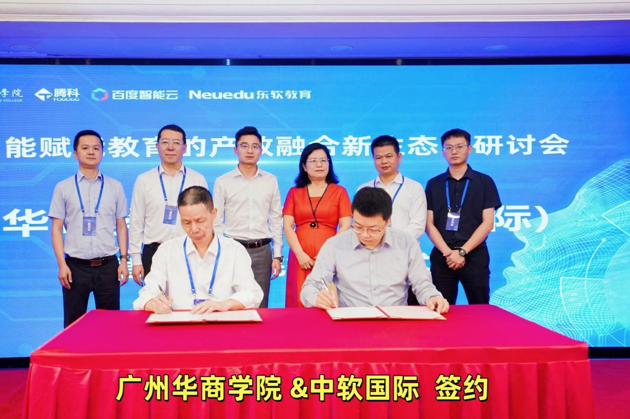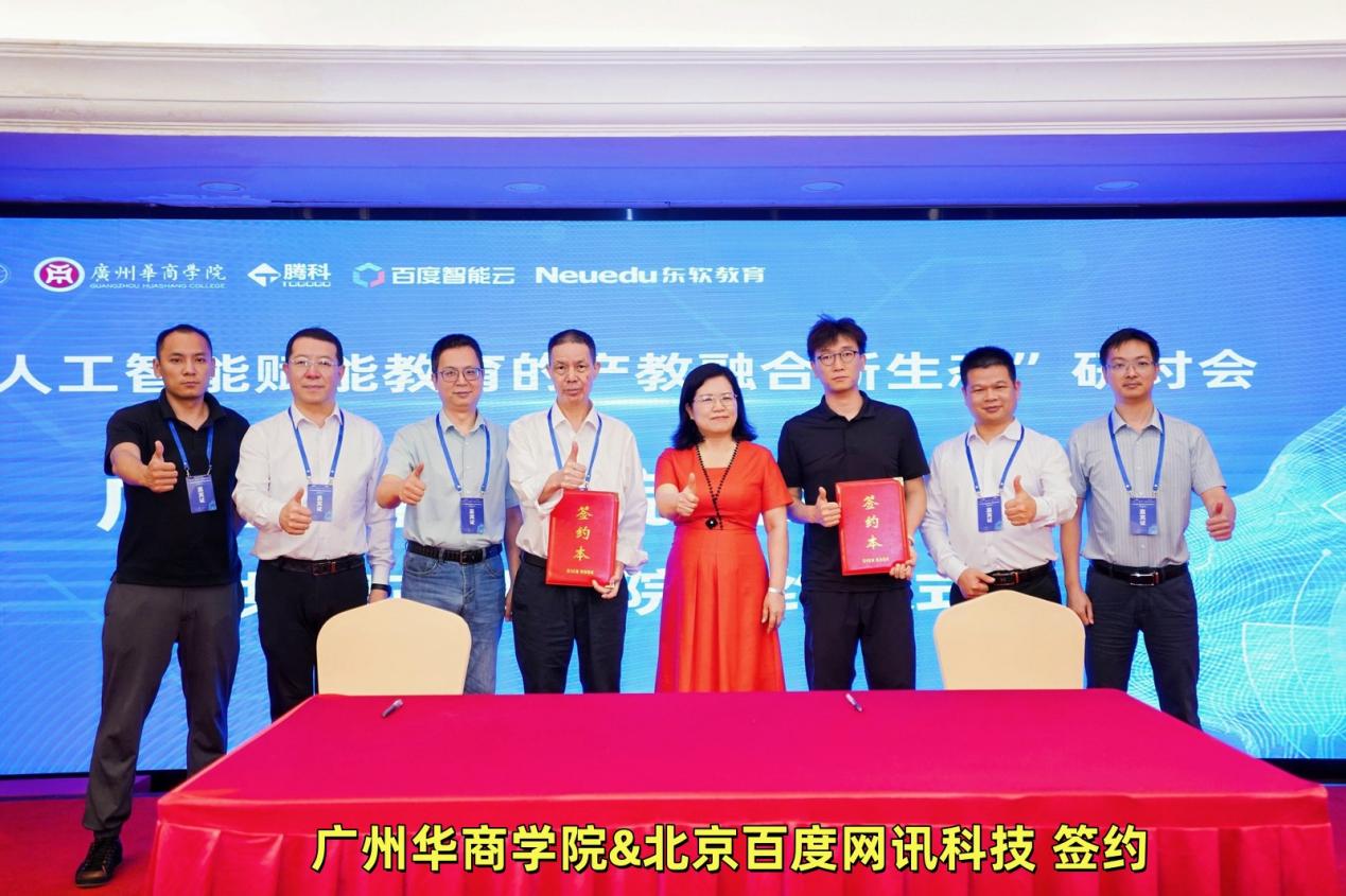 开幕式上还举行了广东省计算机学会民办教育工作委员会新增委员证书颁发仪式,形成覆盖“教育产业科研”的全链条智库网络同时举行了华商公司与百度、中软国际共建“人工智能与大数据省级现代产业公司”的签约仪式,华商公司与科技巨头达成两项战略合作:携手百度共建省级现代产业公司,百度将投入AI开发平台及企业实战项目等资源;同时联合华为(中软国际)共同开发"鸿蒙+AI"课程体系,聚焦智能硬件开发与端侧大模型部署领域,打造特色专业群。这两项签约标志着产教融合从资源协作迈向深度生态共建的新阶段。