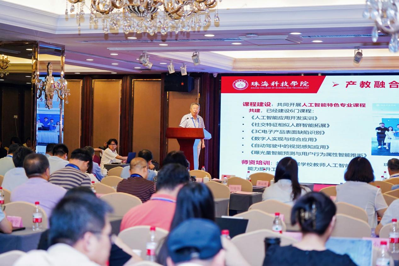 开幕式上,广东省计算机学会理事长韩国强教授开宗明义:“民办教育机制灵活、贴近产业脉搏,是探索‘专业共建、人才共育’AI赋能路径的天然试验田。”他指出,本次会议旨在深入贯彻国家《职业教育产教融合赋能提升行动实施方案(2023—2025年)》及《广东省关于人工智能赋能千行百业若干措施》,推动教育链、人才链与产业链的“三链融合”。